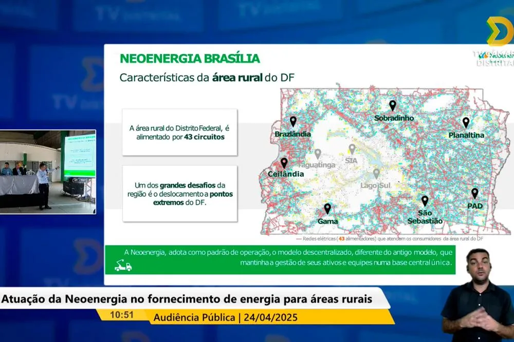 “A energia elétrica ainda é um desafio para muitas famílias que vivem e produzem nas áreas rurais do DF. Eu acompanho o dia a dia dessas comunidades e hoje estamos aqui para buscar soluções conjuntas com diálogo, responsabilidade e ação. A falta de energia em diversas localidades prejudica a produção rural, a educação, a saúde e a qualidade de vida das comunidades. É preciso garantir que a energia chegue a todos”, defendeu Pepa na audiência. O deputado Iolando (MDB) ressaltou uma das principais reclamações dos produtores rurais do DF. “Queremos uma atenção especial da Neoenergia com relação às áreas rurais. Muitos locais possuem apenas ligações monofásicas, o que acaba gerando muita queima de equipamento”, relatou.